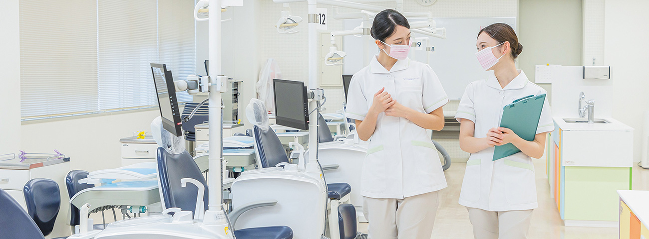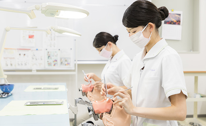 口腔ケアの最前線で、輝く力を身につける。 歯や口の中の健康と、キレイを守る豊富な知識と確かな技術。そして患者さんへのきめ細かな心遣い、歯科医師やスタッフとの協調性、さらには仕事への責任感まで、しっかりきっちり学びます。また、本校独自の『ライフデザイン』カリキュラムで、ひとりの人間としての魅力も磨き、口腔ケアの最前線で、自分らしく活躍できる力を身につけていきます。 学びのポイント 臨床・臨地実習 科目紹介 ライフデザイン